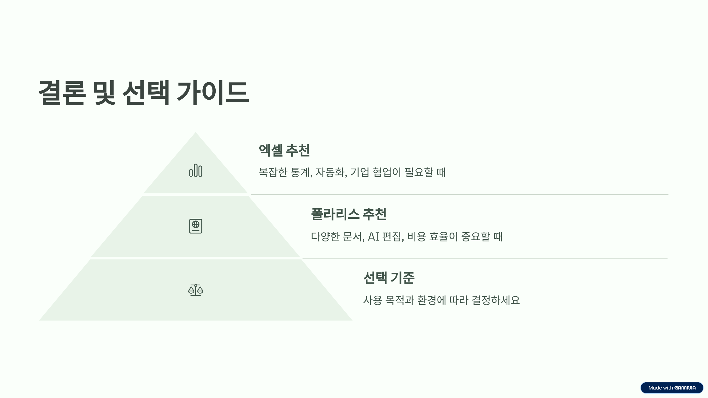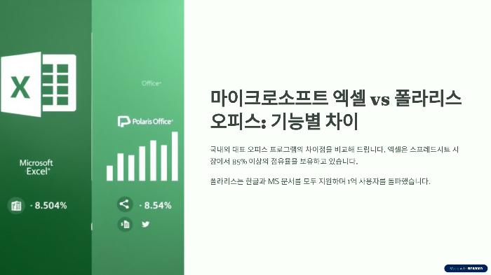 마이크로소프트 오피스는 전문가용, 기업용 업무에 최적화되어 있으며, 복잡한 문서 작업이나 팀 단위 협업에 강한 성능을 보여줍니다. 반면, 폴라리스 오피스는 가볍고 빠르며 모바일 중심의 라이프스타일에 잘 맞는 오피스 솔루션입니다.